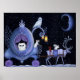 Póster Gato Azul Carruaje Invierno Búho Nevado Ciervo Bla