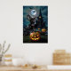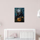 Fabuloso: ¡Acepta a los Spooktaculares! Un místico gato negro vestido con un traje de bruja, con un gorra puntiagudo y encaramado en una escoba, vuela sigilosamente sobre un castillo oscuro y aterriza en el vertedero lleno de calabazas para reírse. El pelo de su felino brilla con una funda de color negro azabache, que contrasta maravillosamente con el espeluznante fondo. Una luna llena en el cielo con murciélagos zumbando alrededor, intensifica esta conmovedora escena que captura el espíritu de Halloween para encantarte y cautivarte a ti y a tus amigos con la época más espeluznante del año! ©2024 Tan Choon Hong. Todos Los Derechos Reservados.