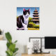 Los gatos han convivido con el hombre durante milenios. Muestra al mundo tu pasión por los gatos con este retrato de un Bobtail japonés frente a una pagoda. Genial para todos los amantes del gato.