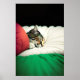 En la horrible realidad de este genocidio, a veces el arte encontrará una manera de recordar a la gente el sufrimiento de Palestina, tanto humanos como sus mascotas, y todos los animales en Gaza. Han aparecido muchos videos acerca de los palestinos y su amor por sus mascotas, incluyendo gente que regresa a través de los ataques aéreos o en la "pausa humanitaria" para tener a sus mascotas gatos. Por lo tanto, estoy creando una serie de gatos de bandera palestina como un giro a la bandera palestina (y en algunos fundas, puede ser una manera de mostrar solidaridad cuando el McCarthyismo y la represión de la libertad de expresión es extrema). Hecho con ayuda de Wombo