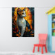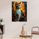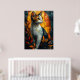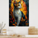 Esta fascinante obra de arte de cristal cautivado capta la elegancia de un gato disfrutando de un cálido resplandor de otoño. Ricos patrones geométricos y una vibrante paleta de naranja, oro y azul oscuro crean una decoración atemporal. Perfecto para los amantes de los animales y los amantes del arte moderno y sofisticado.