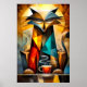 Los ojos estrechados y el vapor de café, este felino geométrico irradia confianza tranquila y sabiduría abstracta. Construido a partir de audaces planos cubistas y tonos cálidos, es un retrato encantador de la introspección moderna con un giro felino. Para los amantes del diseño inteligente y los gatos más agudos.