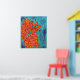 Este vivo y pintoresco gato de tabby naranja está sentado sobre un fondo acuático abstracto de alto contraste. Sus sorprendentes ojos de aguamarina coinciden con el fondo.