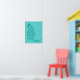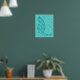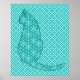 Imagen digital de medios mixtos de un gato sentado de inspiración japonesa, en un patrón tradicional de asanoha, con un fondo estampado - patrones mixtos en turquesa suave y agua