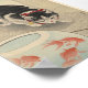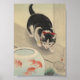Gato mirando al Poster de animales de la vieja usanza de pescado japonés.