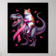 Póster Gato Montando En Dinosaurio Rex. Conciencia sobre