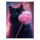 Póster Gato negro con ojos verdes sostiene algodón dulce