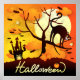 Noche de Halloween con gato negro y texto, ilustracion digital