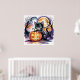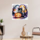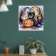 Póster Gato negro de Halloween con linterna Jack-O-Lanter