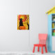 Este poster muestra una pintura de un gato negro sentado en una calabaza mirando la luna de Halloween.