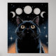 Póster Gato negro gótico, gato negro de la hora de la bru