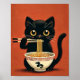 Póster Gato negro lindo comiendo Ramen Kawaii Pared de fi