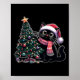 Póster Gato negro lindo Kitten Santa Hat Árbol de Navidad