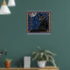 Póster Gato negro mirando la luna y las estrellas