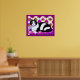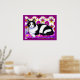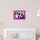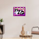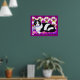 Poster en un ilustracion de un gato de esmoquin blanco y negro sobre un cojín, con un fondo exótico y estampado en tonos magenta y violeta