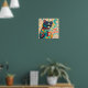 Gato de dibujos animados estilo retro con gafas de sol de gran tamaño, sosteniendo una taza de café. Colores atrevidos inspirados en los 80 (verde azulado, mostaza, coral) con un fondo de textura de semitono y un eslogan divertido como "Pausa para el café" en una fuente de escritura vintage.