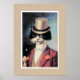 Ilustracion vintage de Louis Wain de un gato blanco y negro vestido de alta moda y con un sombrero de top y una caña.