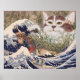 Collajes únicos de famosos ukiyoe, o impresiones japonesas en bloques de madera, la Gran Ola de Kanagawa de Katsushika Hokusai (1760-1849) y el Gato sobrenatural de Kawanabe Kyosai (1831-1889).