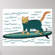 Póster Gato Tabby Surfista Divertido Fresco Habitación In