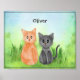 Este diseño muestra dos gatos adorables, uno es naranja y el otro es gris. Son tan lindos que harán a tus hijos más felices. Ideal para cualquier niño. Fácil de personalizar, haciendo clic para editar o para personalizar más adelante, puede reemplazar los gatos, cambiar el tamaño y también puede seleccionar otro fondo. Personalizar con el nombre de su hijo o una cita que le guste a su hijo. ¡Disfrútalo!