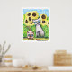 Dos siameses, hermanos, observan una valiente oruga entre el jardín de girasoles. Esta buena huella de arte es de una pintura original de Jamie Wogan Edwards.