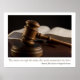 Una maraña de un juez de madera con un libro de referencia (biblia) en el fondo no enfocado. La siguiente cita del Tácito Romano: "Cuanto más corrupto es el estado, más numerosas son las leyes".