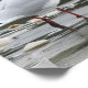 El poster cuenta con una serena escena costera, donde una gaviota camina por la orilla con las olas que le golpean suavemente los pies. El agua tiene una calidad brillante, ya que la luz del sol se refleja en su superficie. Se pueden ver varias conchas diseminadas por el lugar, medio sumergidas en el agua, lo que contribuye a la belleza natural del entorno. La gaviota en primer plano es el foco del poster, capturado con asombrosos detalles. Su ojo es particularmente llamativo, lo que transmite una sensación de calma y contemplación mientras estudia su entorno. La gaviota está colocada al lado de la cámara, lo que permite apreciar plenamente sus características complejas y delicadas. En general, este poster capta la esencia de un día tranquilo en la playa, donde el mundo natural está totalmente expuesto. Los detalles intrincados y el ambiente sereno lo convierten en una bonita adición a cualquier espacio, perfecto para traer un sentimiento de calma y tranquilidad a cualquier habitación.