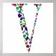 La CARTA 'V' hecha con imágenes de guijarros en todas las formas y colores, como: corazón zafiro, cojín cortado Esmeralda, diamantes marqueses y más...
