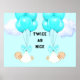 Decoración para fiesta de revelación de género o baby shower de gemelos varones. Agrega texto para personalizar.