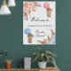 Una tabla de bienvenida para un género elegante y moderno revela fiesta. Fondo blanco, pampas de hierba estilo boho, flores rosadas y azul claro y un niño y chica de oso de peluche con globos azules y rosas. Personalizar y agregar nombres