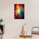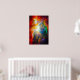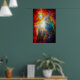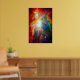 Este afiche cristiano vintage tiene un diseño colorido y vibrante de un espacio cristiano vintage. Con hermosos colores azul rojo amarillo y naranja. Parecen nubes espaciales abstractas. de una foto vintage de los años 1900. El Génesis de los versículos de la Biblia. 1 En el principio Dios creado.