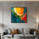 Un sol ardiente irrumpe a través de olas de color y energía, como si el mundo estuviera naciendo en pinceladas vibrantes. El movimiento de las formas evoca viento, mar y fuego en una danza cósmica de luz y creación.