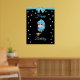 Elegante genio de cumpleaños, lámpara mágica, gems confetti y cinta turquesa sobre Poster negro. ¡El texto puede ser personalizado!