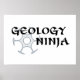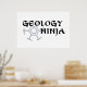 Geology Ninja - white poster with black lettering and rock hammer throwing star.