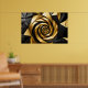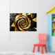 Sorprendente arte abstracto de pared con una espiral dorada con formas geométricas negras y audaces. Perfecto para los interiores modernos, la decoración de lujo y los amantes del diseño contemporáneo.