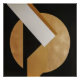 Una composición abstracta que fusiona un círculo dorado, un triángulo oscuro y una franja blanca en elegante contraste. La obra de arte transmite equilibrio entre fuerza y sutileza, explorando el diálogo de formas geométricas, luz y sombra, evocando modernidad y sofisticación atemporal.
