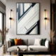 Transforma tu espacio con este arte abstracto arquitectónico. Las líneas diagonales en blanco, gris y azul marino crean una composición limpia y moderna. Ideal para decoración corporativa y entornos minimalistas. Diseño que transmite orden y sofisticación visual.