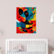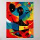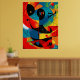 Formas curvas dinámicas en azul verdoso, rojo y ámbar evocan el calor de un eclipse solar. Esta composición abstracta de mediados de siglo puentea la precisión Bauhaus y el movimiento libre, ideal para interiores modernos y espacios creativos. Impreso en tonos vibrantes para máxima profundidad visual y estilo contemporáneo.