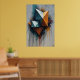 Dive into the raw energy of urban art with this striking abstract piece, 'Urban Prism: Geometric Graffiti Abstract.' This captivating artwork features a dynamic composition of bold, angular geometric forms – a large dominant prism in warm, rusted orange tones and a smaller, cool teal-blue counterpart – seemingly emerging from or breaking away from a stark, textured background.