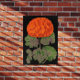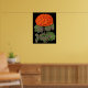Este poster presenta un audaz diseño floral. Un geranio rojo contra fondo negro. Gran sensación de verano en el campo.