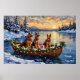 Póster German Shepherd Christmas Boat Holiday