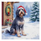 Póster German Wirehaired Pointer Snowy Lodge Santa Hat
