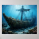 This artwork portrays an ancient sunken ship resting on the ocean floor, covered in coral and algae reclaimed by time. The stillness of the underwater environment and the filtered light from above evoke a forgotten story filled with mystery, exploration, and memory, where nature and the past merge in eternal calm.