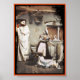 Imagen de época de la película de principios del siglo XX. Esposo y esposa en la cocina siendo abordados por una alta figura fantasmal con la cabeza de calabaza.