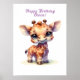 Póster Girafa de bebé lindo color agua
