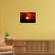 Giraffe and Rhinoceros, Trees, And Orange Sky Sunset Poster.