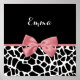 Un poster de diseño de dibujos en blanco y negro con una cinta rosada de color grisáceo atada a un lindo arco. Personalice este elegante diseño de impresión animal añadiendo su nombre. Imagen plana impresa, no arco real.