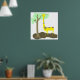 A cute and childlike image of a giraffe. Done using only a few colors (yellow, brown, and green) to make the artwork stand out more.