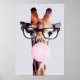 A esta jirafa le encanta llevar gafas y chapotear un chicle rosado.