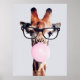 A esta jirafa le encanta llevar gafas y chapotear un chicle rosado.